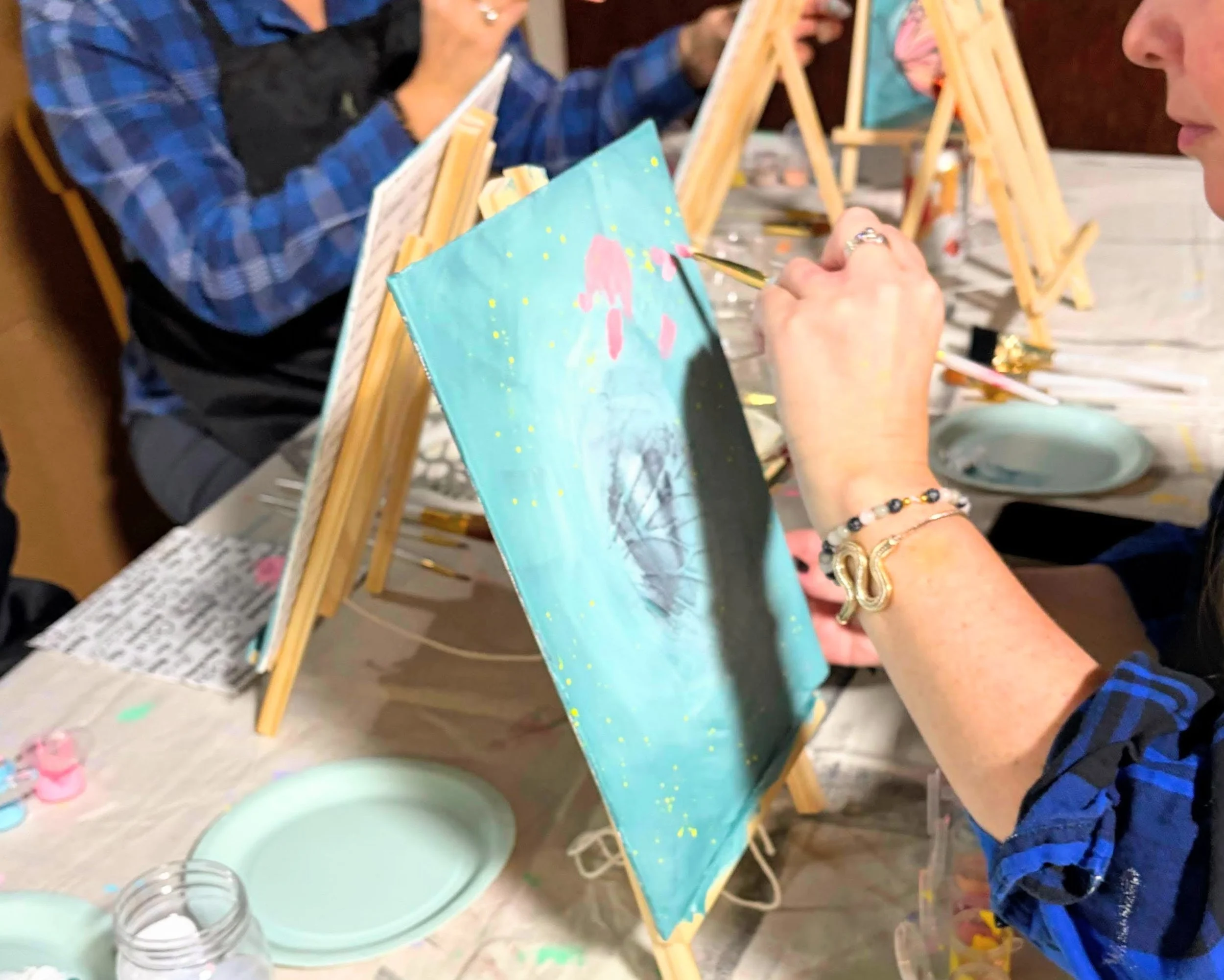 Let’s turn your kid’s birthday into a hands-on creative adventure! Crafting helps kids build confidence, coordination, and problem-solving skills - but they’ll just know it as fun. We'll bring the paint, canvas, and brushes. Want to try something else - maybe an air-dry clay creatures, decorated ceramic sculptures, shrink-art charms, or painted garden stones - let's talk! You focus on the birthday cake and other party décor, and we will take care of the entire project! Every craft becomes a keepsake and a little spark of learning. Minimum 12 crafters.Adult Night-Out